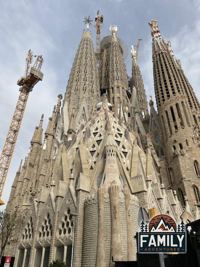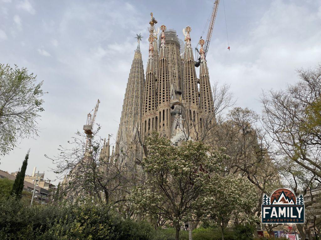 Mittags wurde für die Besichtigung Eintritt verlangt, weshalb wir abends erneut vorbeikamen, da dann die Tore für alle geöffnet waren. Anschließend ging es weiter zur „Sagrada Familia“, die wir unbedingt zumindest von außen sehen wollten. Der Weg dorthin war mit den drei Kids schon relativ weit und zäh, aber er führte uns durch mehrere kleine Parks und zu einem tollen kleinen Café, in dem wir eine Pause einlegen konnten.