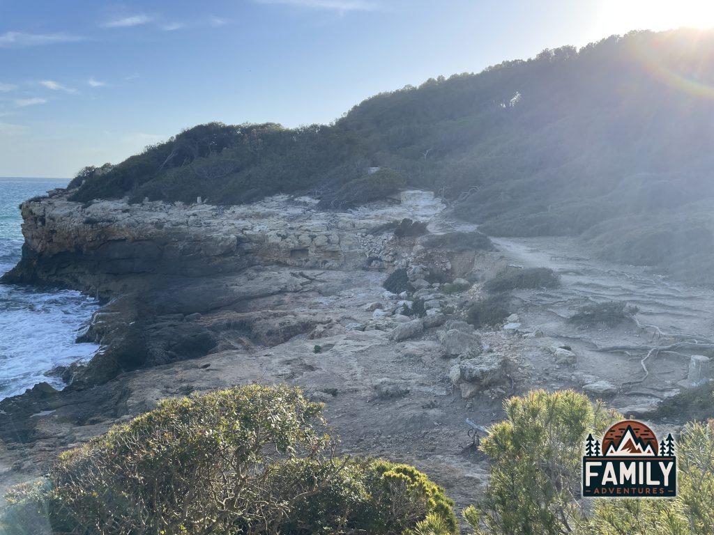 Am Nachmittag entschlossen wir uns dann, alles am Strand zusammenzupacken und etwas wandern zu gehen, da sich der kleine Pfad die Felsen hinauf dafür gut anbot. Dieser Weg bot tolle Klettermöglichkeiten für die Kinder und sorgte für einen wunderbaren Ausblick von den Klippen herab.